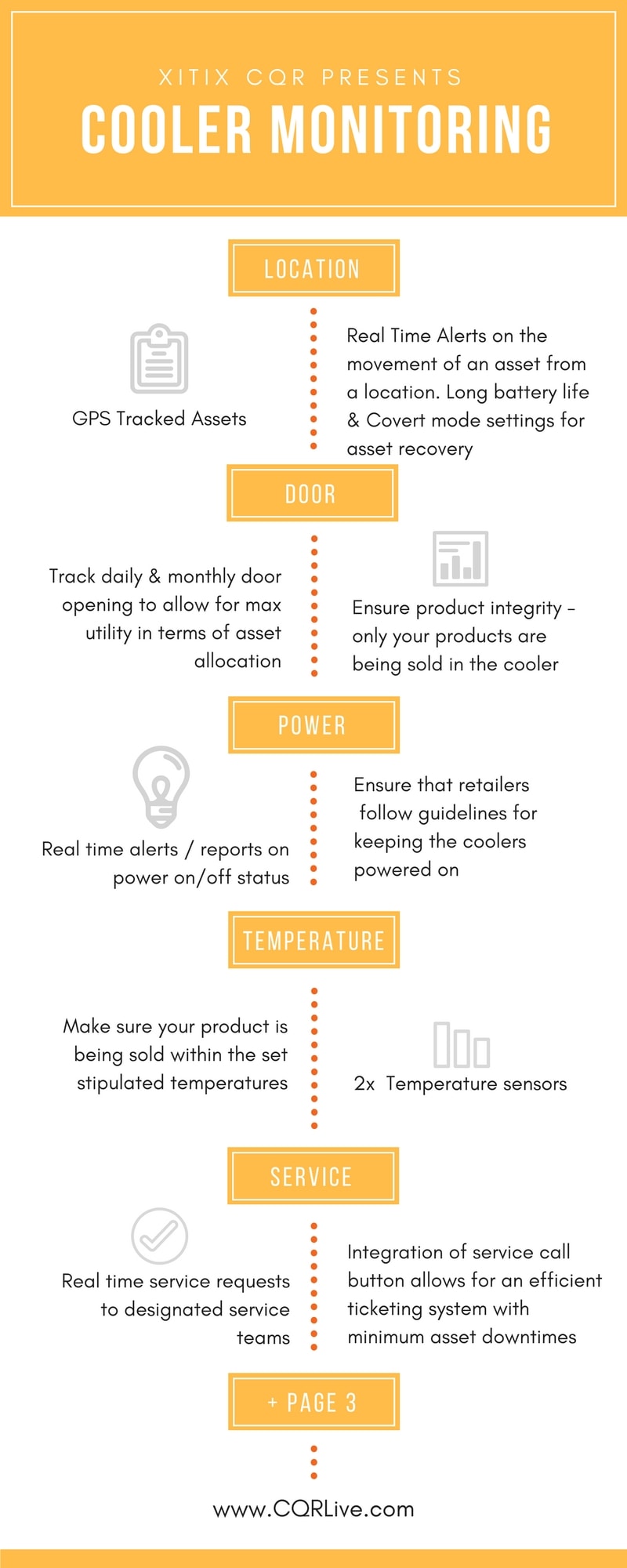 The management of 1000s of coolers/freezers/carts spread out over the country is a monumental task. Beverage companies report cooler losses in the hundreds of thousands every single year due to theft, misplaced and unaccounted assets. This doesn't even begin to consider the lost sales revenue due to long down times, long restocking intervals and often- product damaged due to temperature fluctuations.